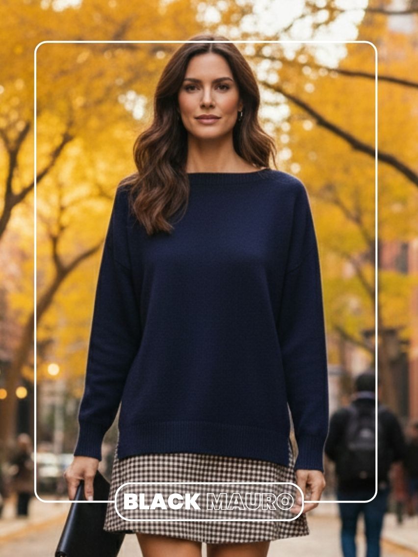 Sweater con puño alto, escote bote y tajo en los laterales.