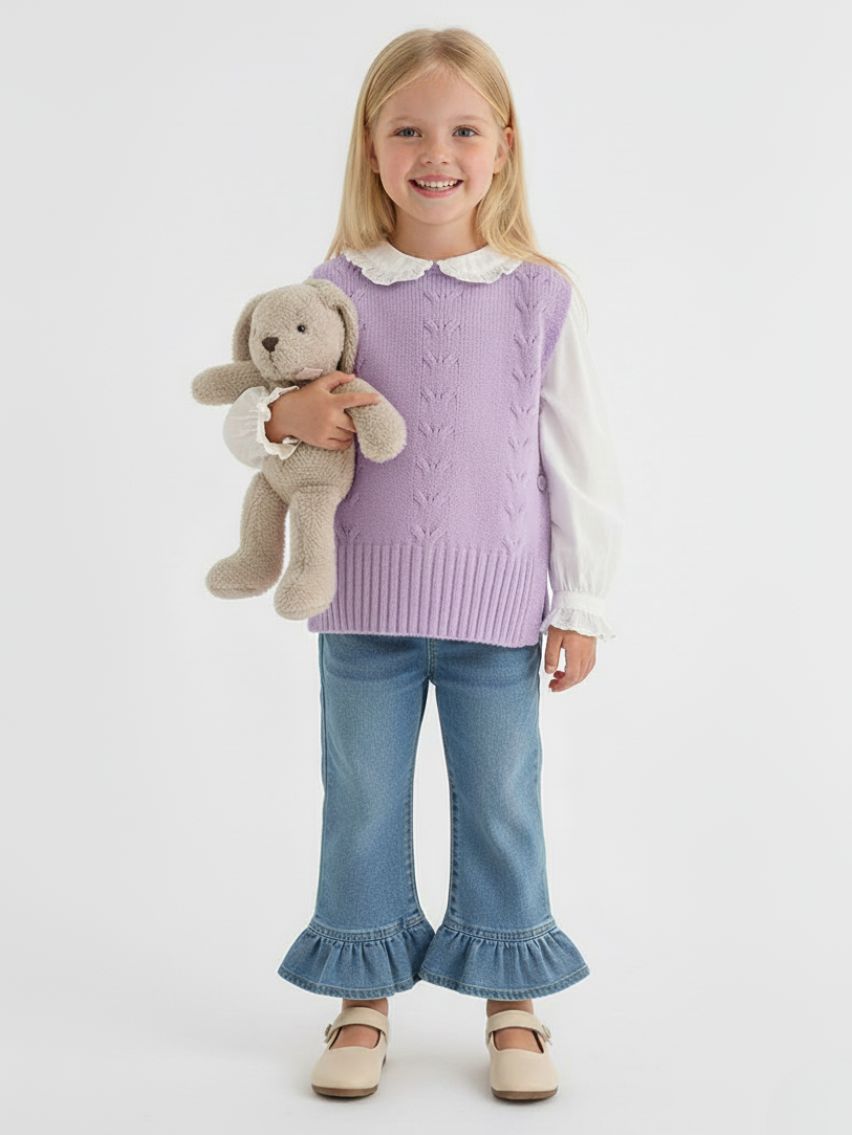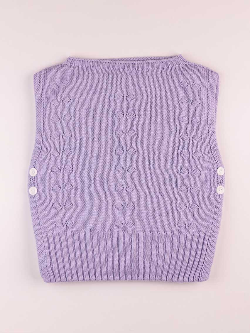 Chaleco con tajo y botones en laterales y punto fantasía en delantera.
