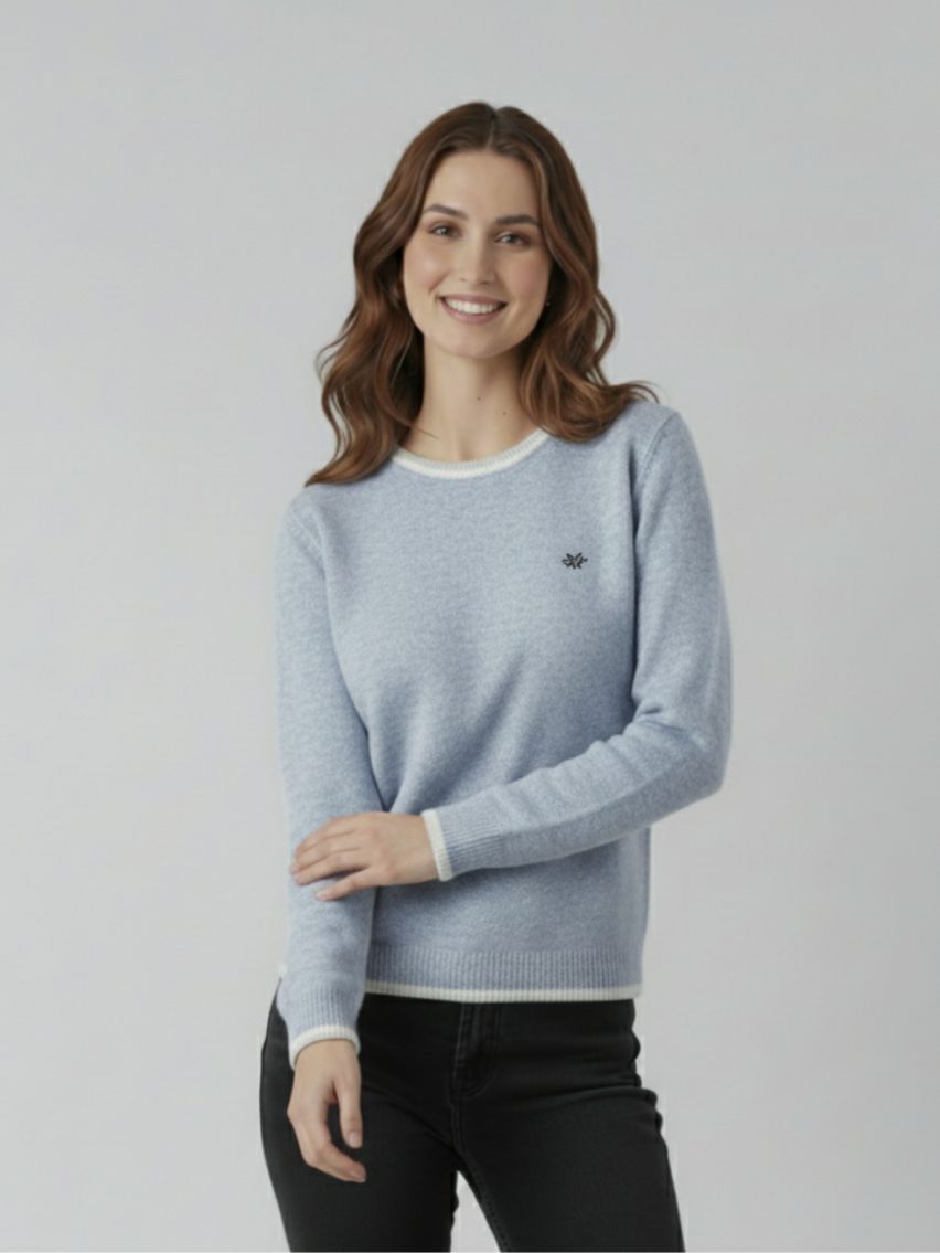 Sweater con bordado en delantera y vivo combinado en puños y elástico.
