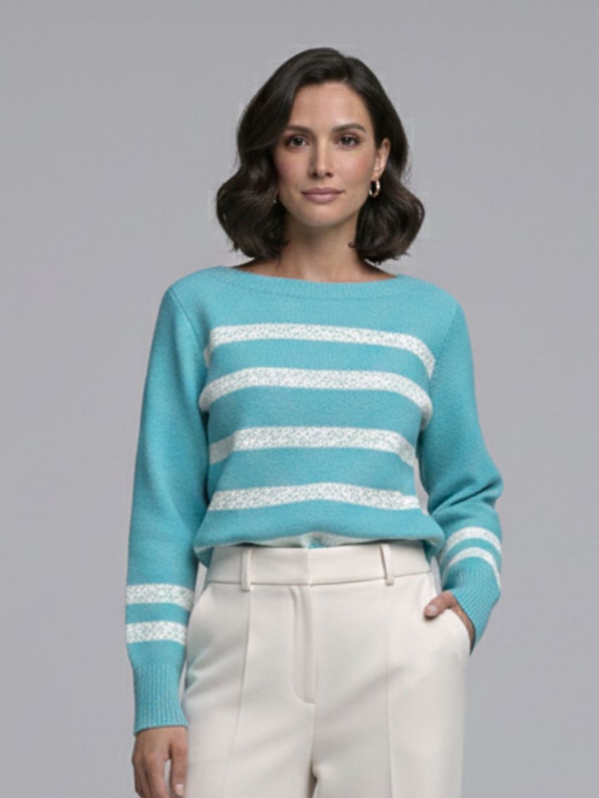 Sweater rayado en delantera con escote bote.