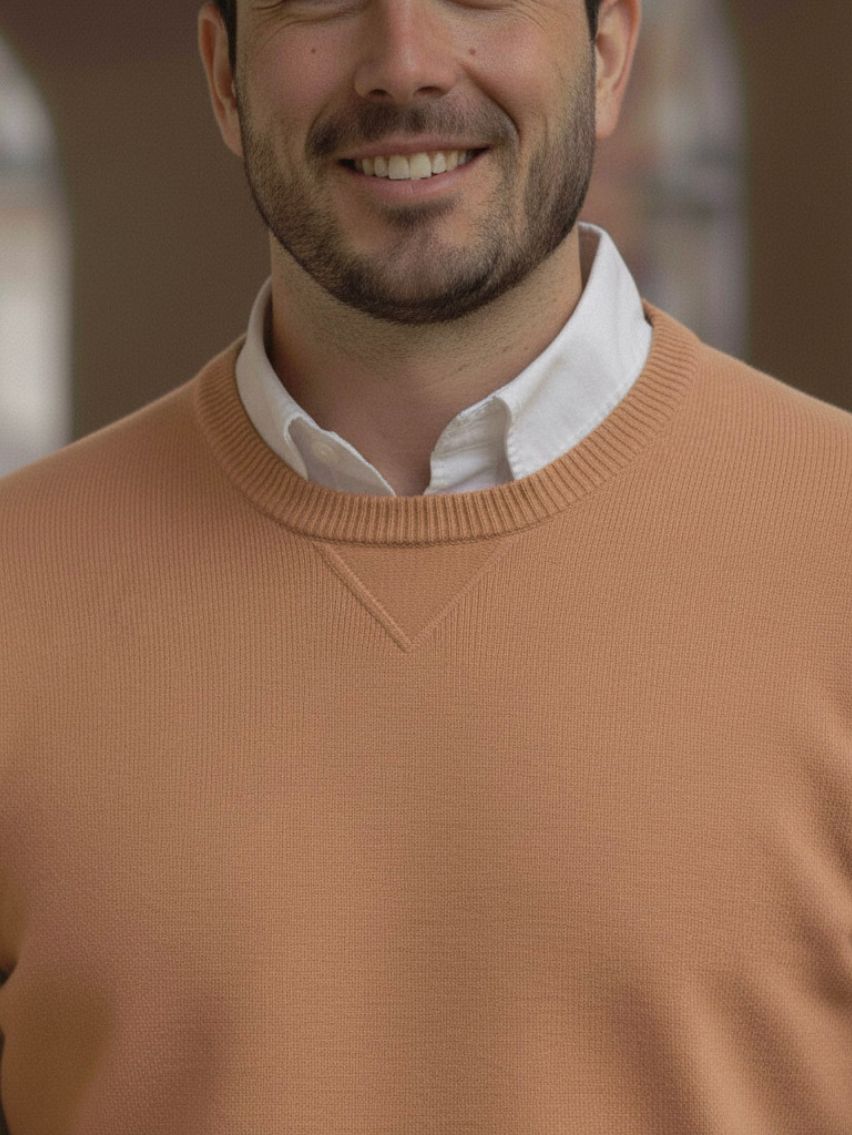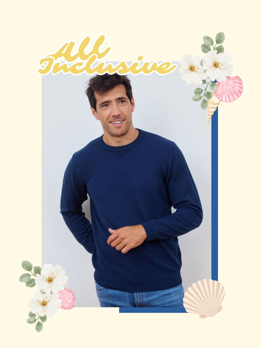 Sweater cuello redondo. Detalle de punto en el cuello.