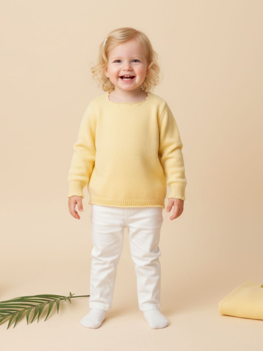 Sweater con escote cuadrado y puños festoneado. Detalle de perla en espalda.