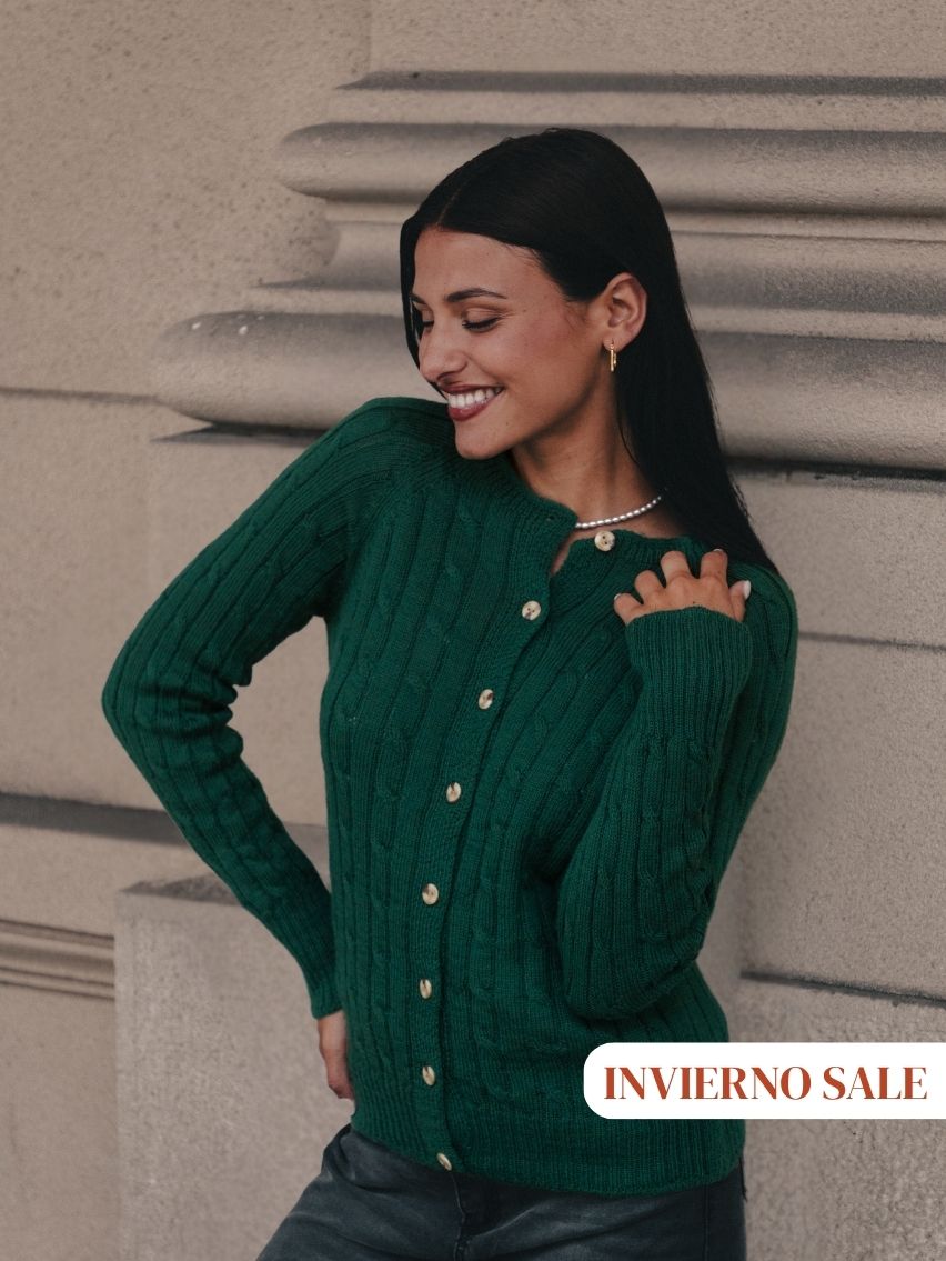 Cárdigan con trenzas en delantera y canelones en espalda.