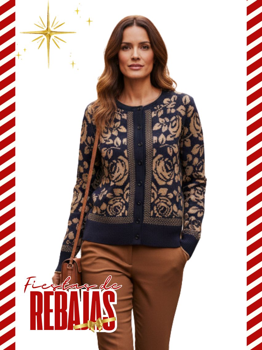 Cárdigan con jacquard de rosas y tachas en delantera.
