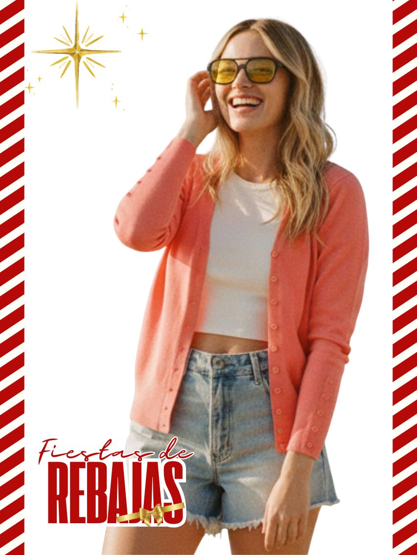 Saquito con botones, elástico y puños altos. Detalle de botones en manga.