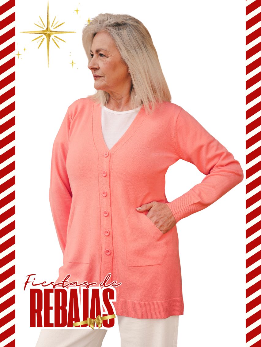 Saquito largo, con bolsillos. Detalle de tajos en los laterales.