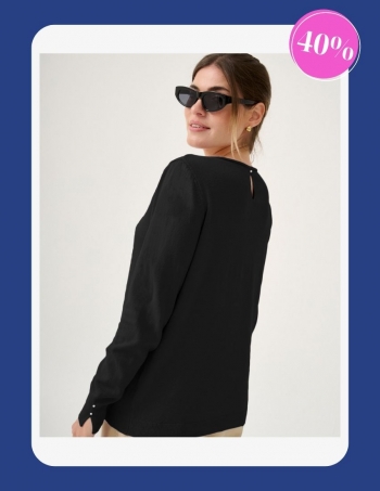 Saquito con botones y bolsillos. Detalle de tejido en trenzas.