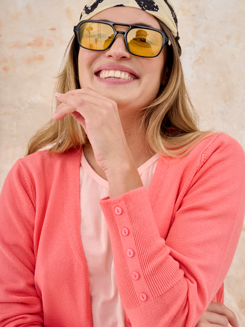 Saquito con botones, elástico y puños altos. Detalle de botones en manga.