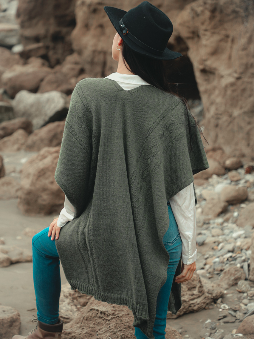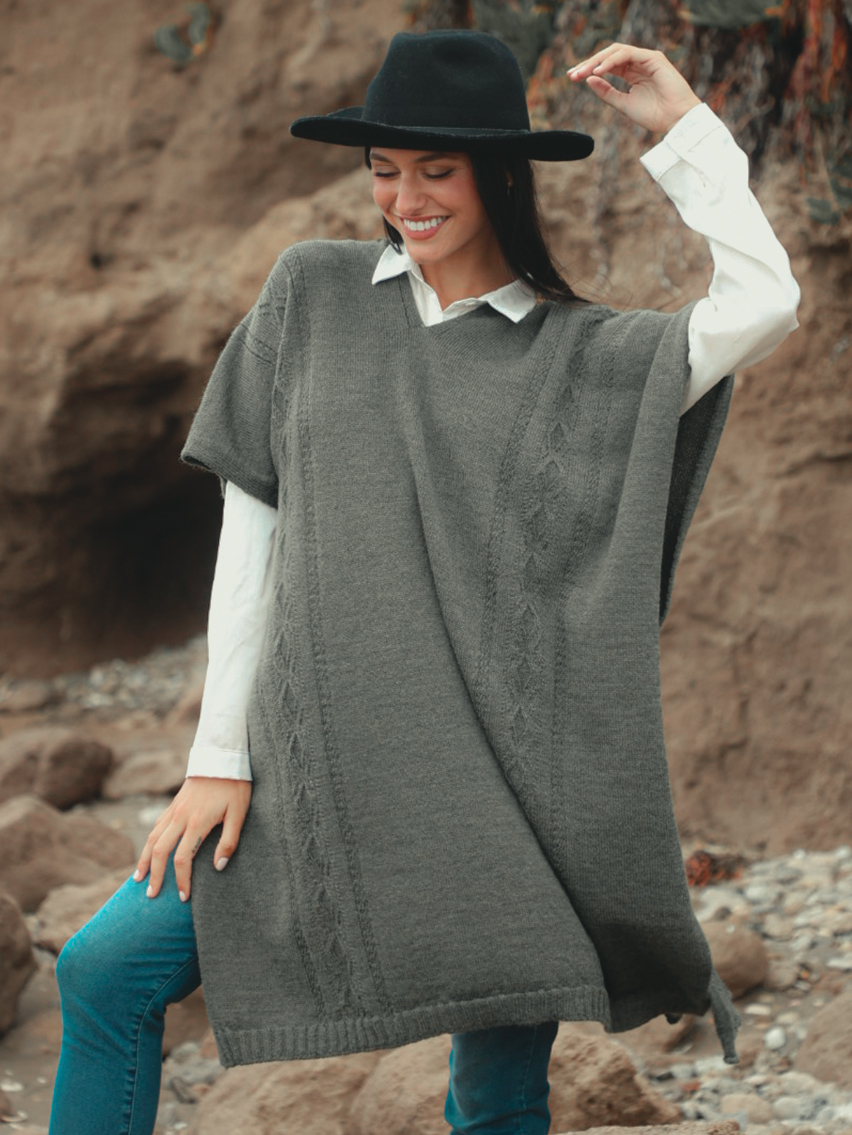 Poncho con trabajo de punto y trenzas.