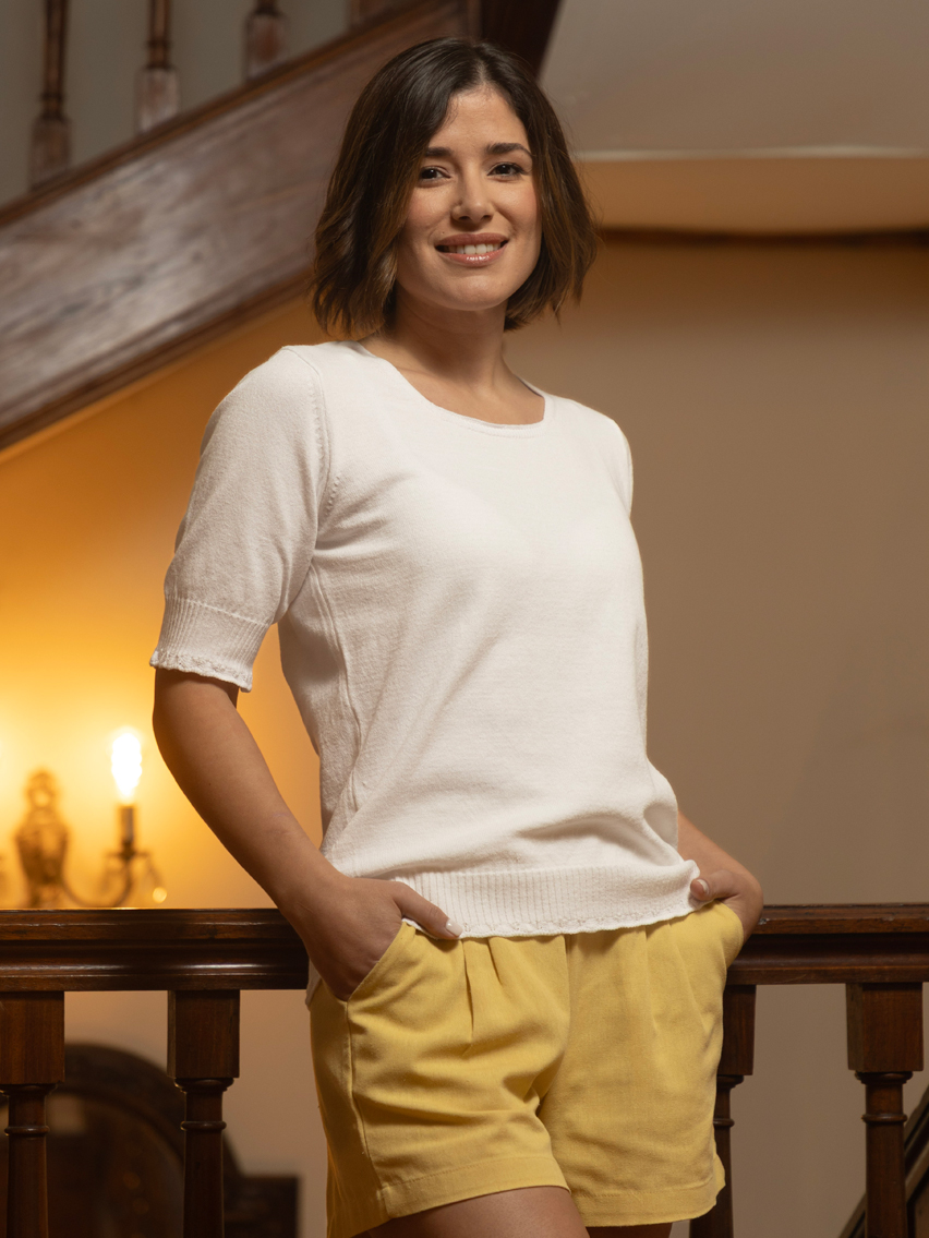 Textura suave, con caída y fresco. Ideal para primavera/verano. Apta para usar sobre la piel.