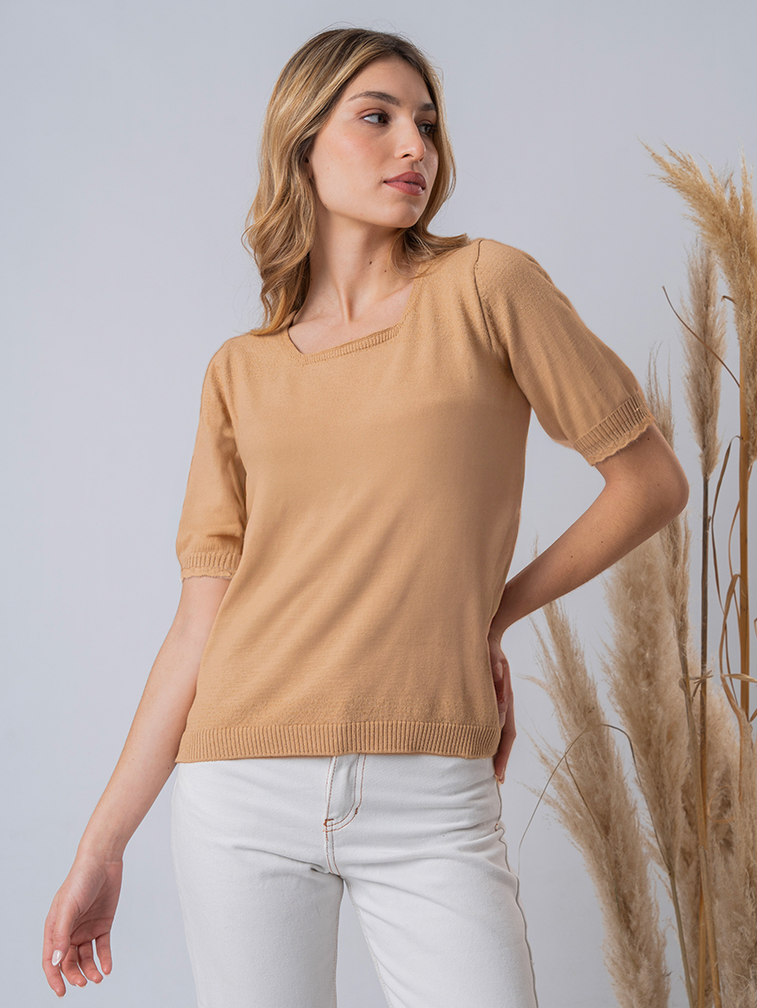 Sweater con festón en elástico y en puños.