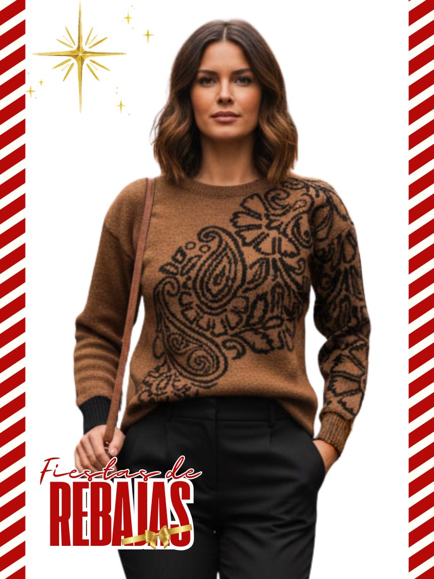 Sweater cuello redondo, con jacquard en delantera y manga
