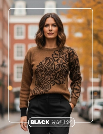 Sweater cuello redondo con puno y elástico alto y trabajo de tejido de punto.