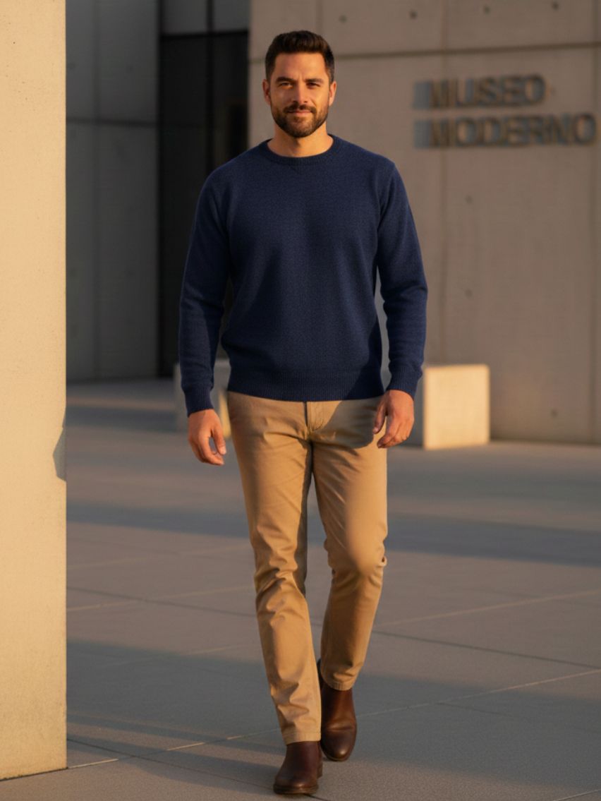 Sweater cuello redondo. Detalle de punto en el cuello.
