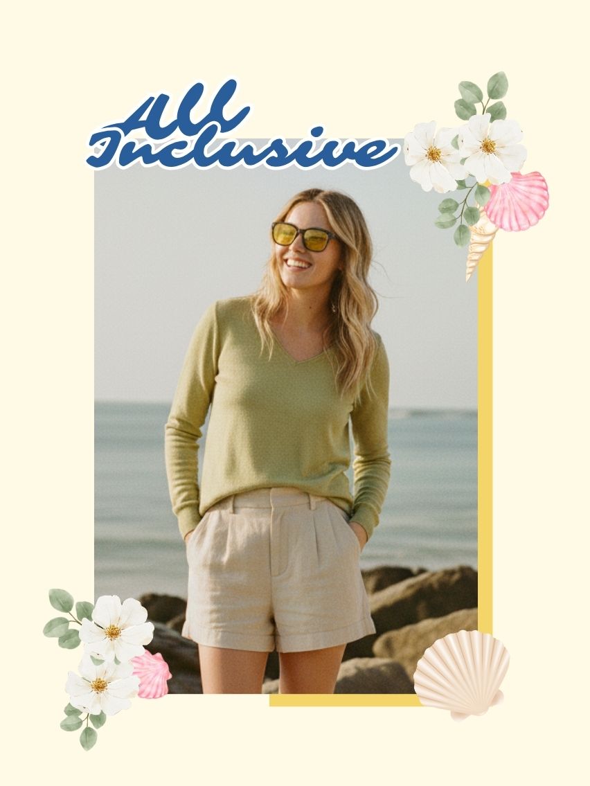 Sweater escote en “v”, con tajos en los laterales. Diferencia de largo entre delantera y espalda.